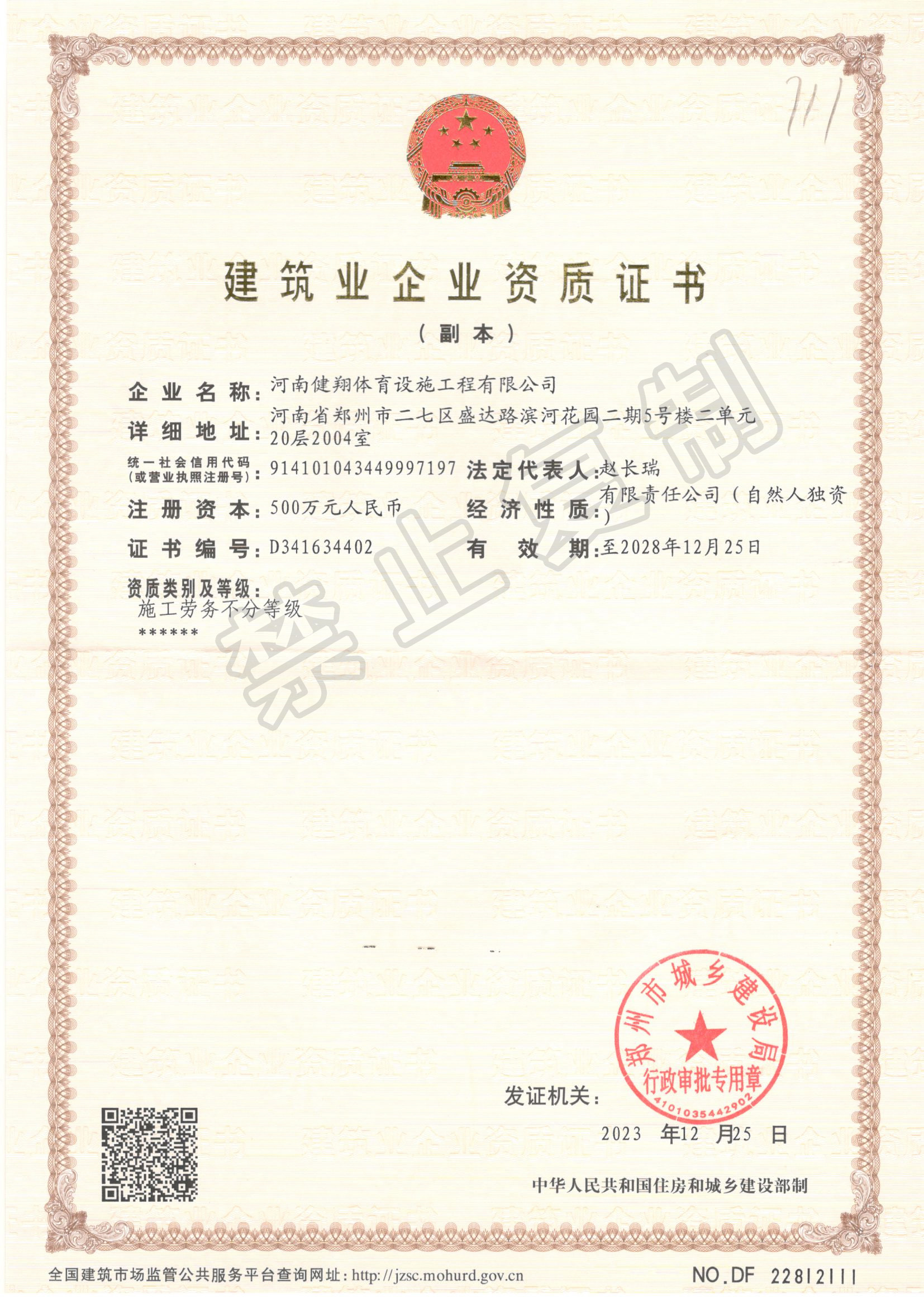 河南健翔體育設(shè)施工程有限公司是一家集生產(chǎn)、銷售、咨詢、設(shè)計(jì)、施工、維護(hù)于一體的專業(yè)體育運(yùn)動場地施工工程有限公司,我們將“優(yōu)質(zhì)、高效、誠信、發(fā)展”作為公司一貫的經(jīng)營理念。自公司成立以來,本著“誠信經(jīng)營、客戶 ”的經(jīng)營態(tài)度,以客戶為中心的經(jīng)營思想,博得行業(yè)的贊譽(yù),以及客戶的信賴。公司擁有一整套實(shí)用的獨(dú)特施工技術(shù)及施工設(shè)備、一批經(jīng)驗(yàn)豐富的專業(yè)施工團(tuán)隊(duì),在全國各地承攬的施工工程中多項(xiàng)通過中國田徑協(xié)會驗(yàn)收、深得用戶好評和信賴,并取得了良好的社會效益!公司主要業(yè)務(wù)有:塑膠跑道工程、PVC塑膠地板工程、環(huán)氧樹脂地坪工程、幼兒園場地工程、體育器械設(shè)施工程、人造草坪工程、地板工程、硅PU球場工程、丙烯酸球場工程、圍網(wǎng)燈光工程等系列的體育場地及器材安裝和貿(mào)易等,為客戶提供新穎、優(yōu)質(zhì)、舒適的運(yùn)動場地…… >>查看詳情
